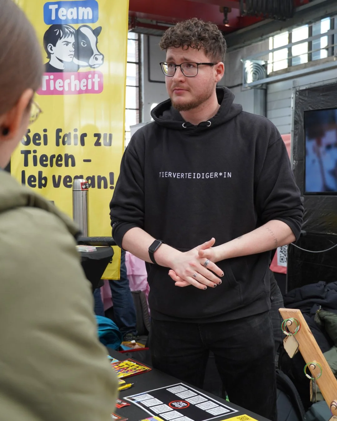 Und damit das funktioniert, braucht es Struktur. Am Stand war klar verteilt, wer welche Aufgabe übernimmt: Es gab Menschen im direkten Gespräch, andere haben sich um die Kamera gekümmert, und eine Person war gezielt für die Kontaktaufnahme zuständig. Diese Aufteilung hat es ermöglicht, als Team effektiv zusammenzuarbeiten. Ein wesentlicher Faktor war auch die Unterstützung aus unserer Community, denn einige Aktivisten sind gezielt angereist, haben direkt Unterstützung angeboten und sich aktiv eingebracht. Diese Form von Zusammenhalt war durchgehend spürbar und hat das gesamte Wochenende geprägt!