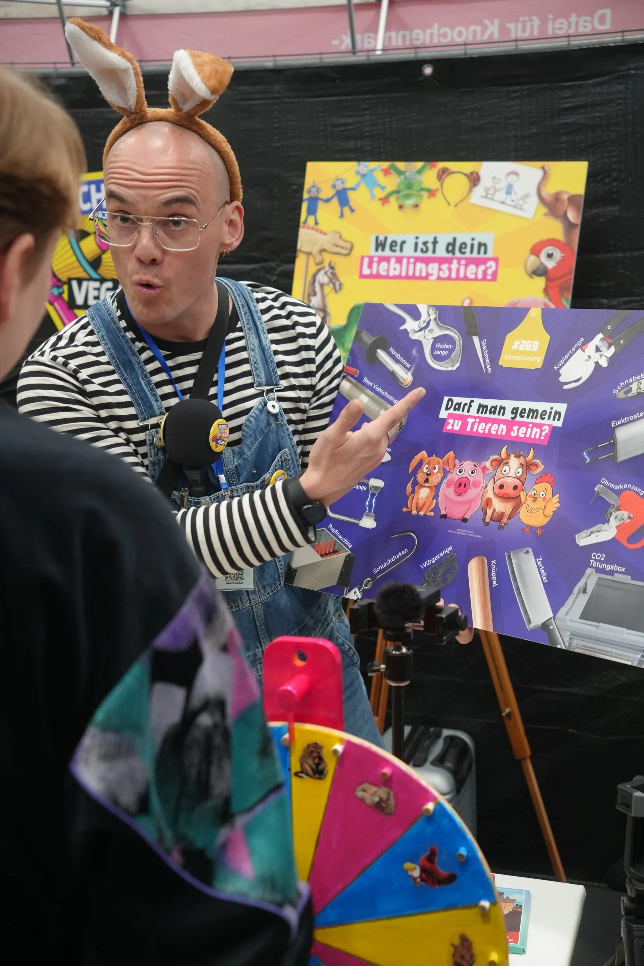 Am Wochenende vom 28./29. März 2026 waren wir von RICHTIG! LAUT! VEGAN! gemeinsam mit TeamTierheit und NEON Protest vor Ort auf der VeggieWorld Düsseldorf. Wir haben mit Familien gesprochen, mit Eltern, mit Kindern und auch mit Menschen, die sich zum ersten Mal intensiver mit dem Thema der Tierausbeutung auseinandergesetzt haben. Viele Gespräche haben daher genau dort angesetzt, wo sie gebraucht wurden. Manche Leute haben klare Impulse mitgenommen, andere haben kritische Fragen gestellt, Unsicherheiten geäußert oder sich erstmals tiefer mit den Hintergründen beschäftigt. Unser veganes Glücksrad und unser Tablet mit dem “Aktivistenquiz” hat zusätzlich viele Menschen an den Stand gezogen und einen direkten Einstieg in den Austausch geschaffen.